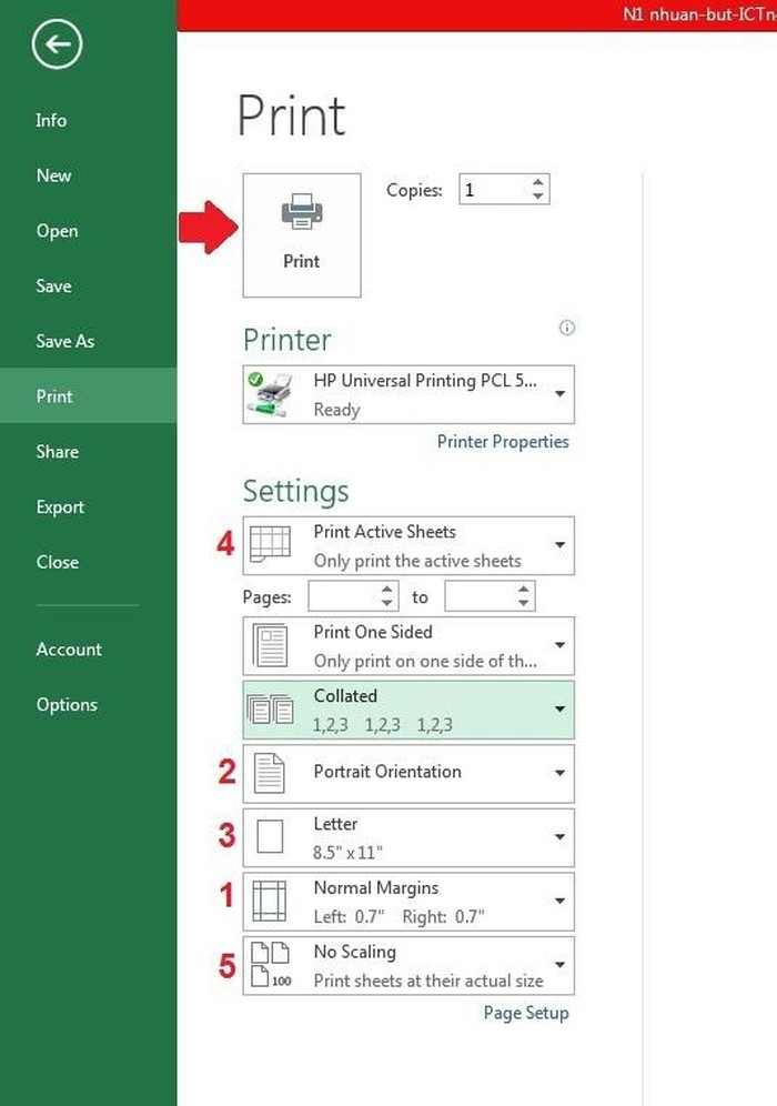 Hướng dẫn in file Excel