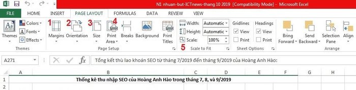 Trước khi thực hiện lệnh in trong Excel, người dùng có thể thiết lập sẵn một số tùy chọn ngay trên trang tính, ở mục Page Layout.