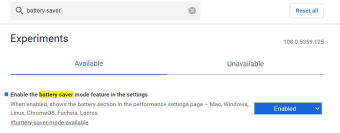 Tính năng thứ 2 đó là "Battery Saver" (tiết kiệm pin). Google cho biết khi kích hoạt tính năng này, Chrome sẽ tự động giới hạn các tiến trình chạy nền và giảm các hiệu ứng không cần thiết như hiệu ứng cuộn trang, hiệu ứng video, hình ảnh trên trang web… giúp tiết kiệm năng lượng hơn 20% so với mặc định.