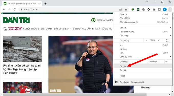 - Tiếp theo, tại giao diện chính của Chrome, nhấn vào biểu tượng dấu 3 chấm ở góc trên bên phải, chọn "Cài đặt" (hoặc "Settings) từ menu hiện ra.