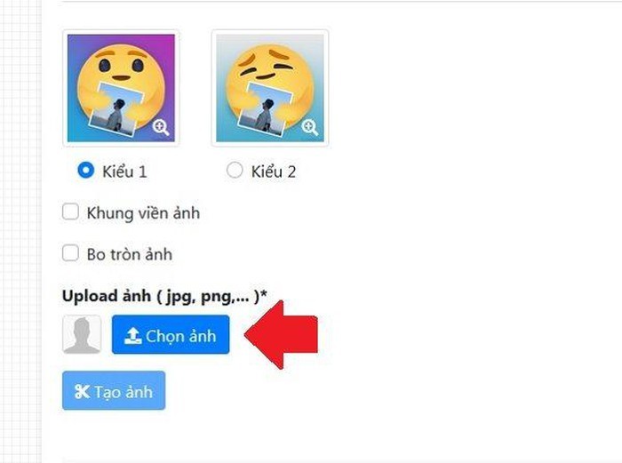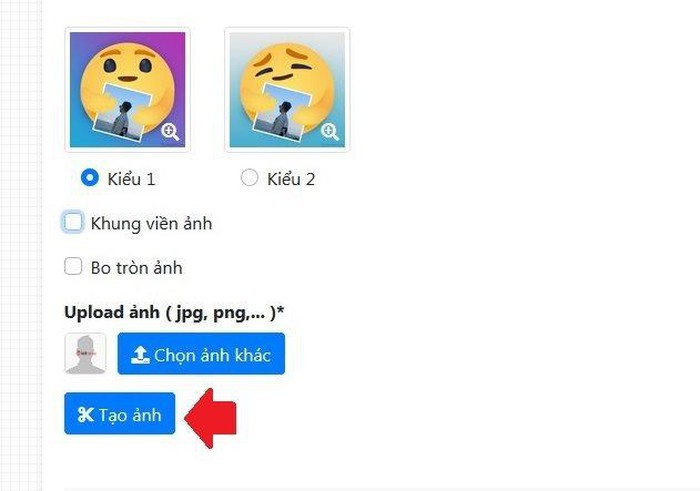 Mọi người sẽ có 2 lựa chọn kiểu icon "Thương thương" ở 2 trạng thái khác nhau. Nếu không phải dùng ảnh định dạng PNG với toàn bộ nền trong suốt thì chúng ta có thể tích chọn để khung viền ảnh hoặc bo tròn ảnh. Sau khi lựa chọn xong, hãy bấm "Tạo ảnh".