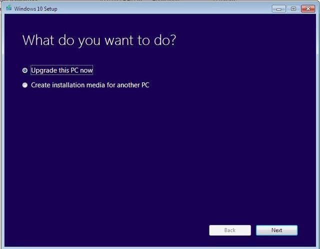 - Kích hoạt file download được để sử dụng ngay mà không cần cài đặt. Tại hộp thoại hiện ra, bạn chọn "Upgrade this PC now", rồi nhấn "Next" để tiếp tục.
