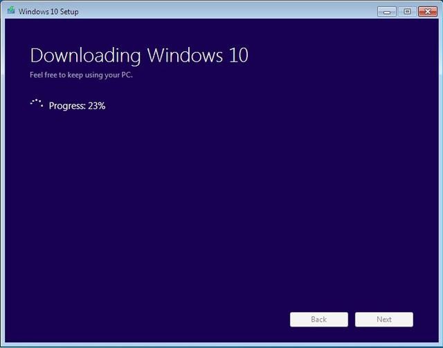 - Công cụ sẽ bắt đầu quá trình download Windows 10. Thông thường quá trình download này sẽ mất từ nửa tiếng hoặc hơn để hoàn tất quá trình download, tùy thuộc vào tốc độ mạng Internet. Trong khi quá trình này diễn ra, bạn vẫn có thể sử dụng máy tính bình thường.