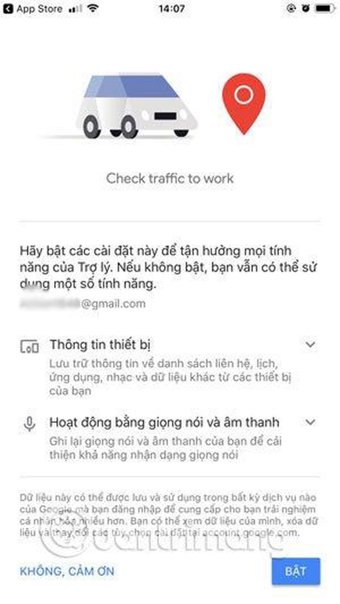 Tiếp theo là một vài thông tin yêu cầu truy cập vào một số tính năng và hoạt động trên thiết bị của trợ lý ảo Google. Nếu bạn bật thì Google Assistant sẽ giúp bạn nhiều hơn về những tính năng mà bạn cho phép trợ lý ảo Google truy cập trên thiết bị của bạn.