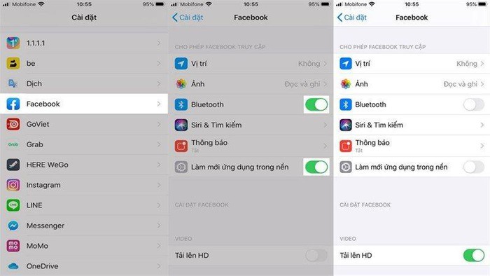 Để khắc phục điều này thì bạn sẽ vào Cài đặt > Facebook. Tắt tính năng Bluetooth và Làm mới ứng dụng trong nền. Sau đó, bạn khởi động lại máy và sử dụng như bình thường.