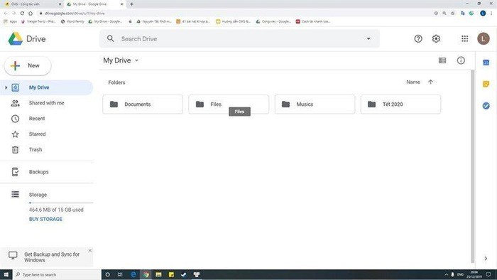 Đầu tiên bạn cần truy cập vào tài khoản Google Drive của bạn. Trong giao diện chính sau khi đăng nhập bạn sẽ thấy toàn bộ dữ liệu bạn đã lưu trữ.