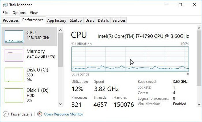 Bạn có khi nào muốn theo dõi thời gian thực về việc sử dụng tài nguyên của máy tính? Windows 10 có cửa sổ hiển thị hiệu suất máy tính, bao gồm hiệu suất CPU, GPU, ổ nhớ, mạng…