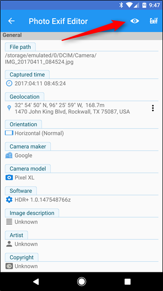 Xem, chỉnh sửa và xóa các dữ liệu EXIF nâng cao trên Android.