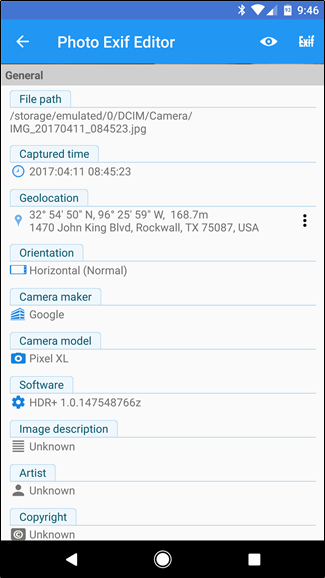 Dữ liệu EXIF rất hữu dụng. Nhờ nó bạn có thể biết một bức ảnh đã được chụp ở đâu, vào lúc nào. Tuy nhiên, bạn cũng nên nghĩ đến việc xóa nó trước khi chia sẻ công khai một bức ảnh. Dù Android không hỗ trợ xóa dữ liệu EXIF, bạn vẫn có thể sử dụng Photo EXIF Editor để làm điều này.