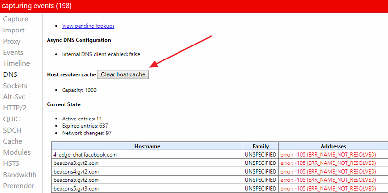 chrome://net-internals/#dns