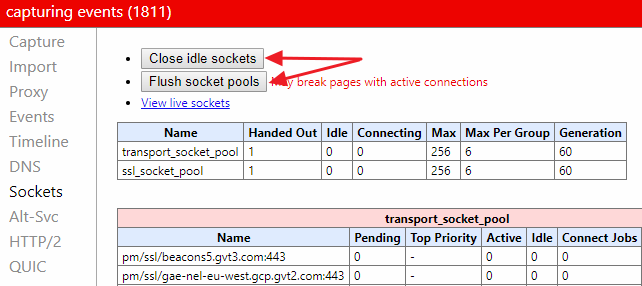 chrome://net-internals/#sockets