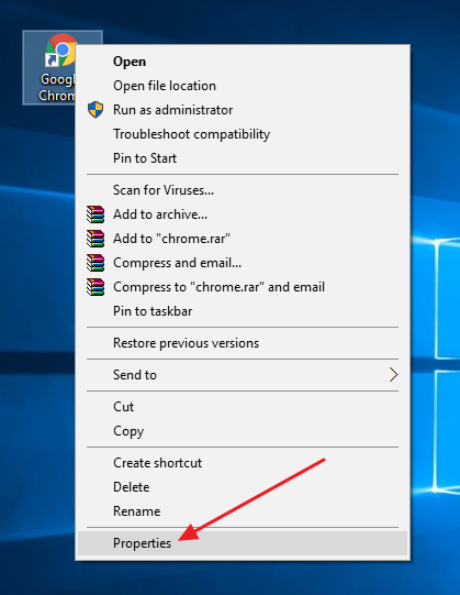 Quay lại màn hình desktop, bạn nhấp chuột phải lên biểu tượng của Chrome, chọn Propeties.