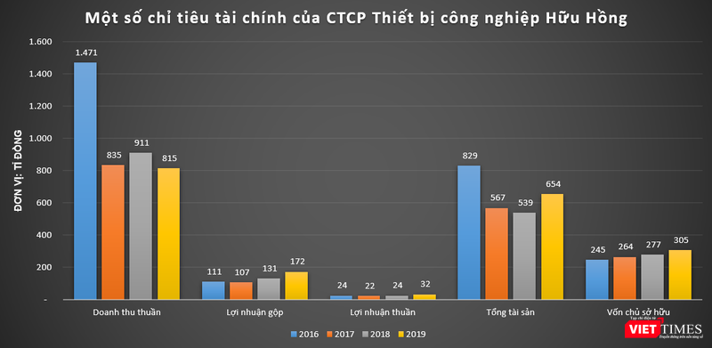 Doanh thu sụt giảm nhưng Hữu Hồng lại báo lãi thuần khá ổn định trong 4 năm qua. Riêng năm 2019, lợi nhuận thuần của doanh nghiệp này tăng lên mức 32,2 tỉ đồng, tăng 32% so với năm trước, tương ứng với biên lợi nhuận khá mỏng, ở mức 4%. Tính đến ngày 31/12/2019, quy mô tổng tài sản của Hữu Hồng ở mức 654,3 tỉ đồng, cao gấp đôi so với quy mô vốn chủ sở hữu.
