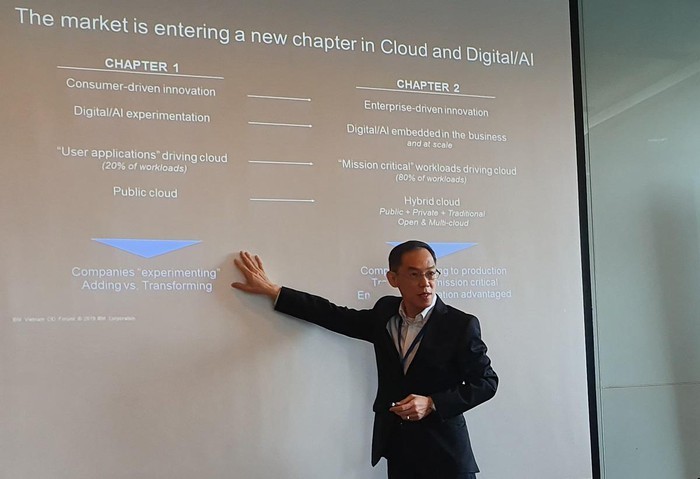 Trước đây, trong quá trình mà IBM gọi là Chương 1 của chuyển đổi số, nhiều tổ chức đã thử nghiệm AI và chuyển khối lượng công việc đơn giản lên đám mây, họ đã nghiễm nhiên cam kết thực hiện các bước chuyển đổi số cơ bản. Tuy nhiên, kỷ nguyên thực sự của chuyển đổi số là ở thời điểm hiện tại, thời điểm chứng kiến sự thay đổi rõ rệt của cả ngành công nghiệp. Và IBM gọi là Chương 2.