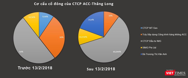 Ở chiều hướng ngược lại, IMG trở thành cổ đông chi phối khi nâng tỉ lệ sở hữu lên 60,044%. Ngoài ra, ACC Thăng Long cũng ghi nhận thêm sự góp mặt của nữ cổ đông sinh năm 1991 Trương Thị Vân Anh với tỉ lệ sở hữu 19,4% vốn.