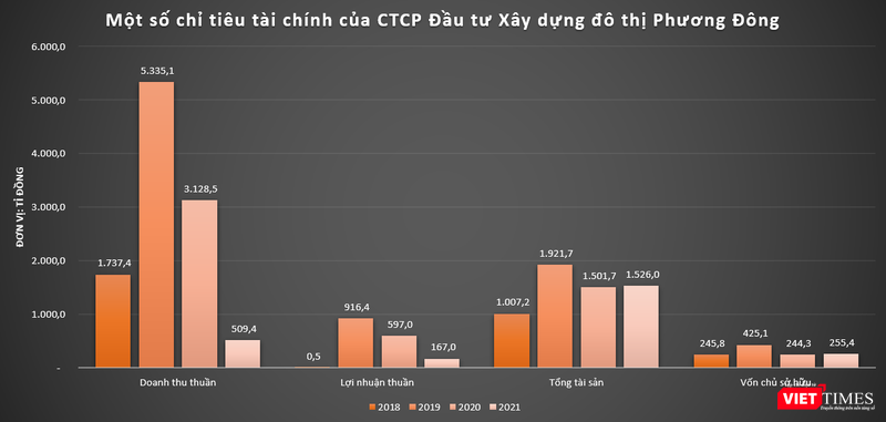 Đến năm 2021, Phương Đông chỉ còn ghi nhận doanh thu thuần và lợi nhuận sau thuế lần lượt đạt 509 tỉ đồng và 167 tỉ đồng.