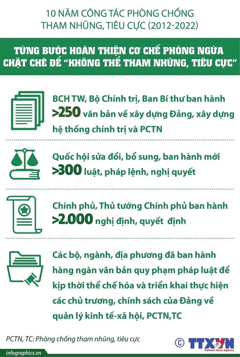 Công tác xây dựng, hoàn thiện thể chế được quan tâm hơn, từng bước hoàn thiện cơ chế phòng ngừa chặt chẽ để “không thể tham nhũng, tiêu cực.”