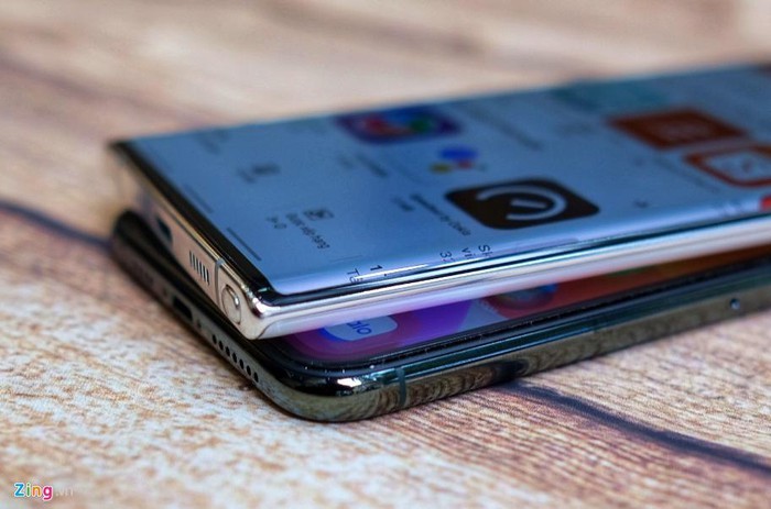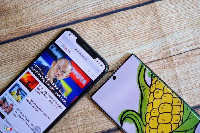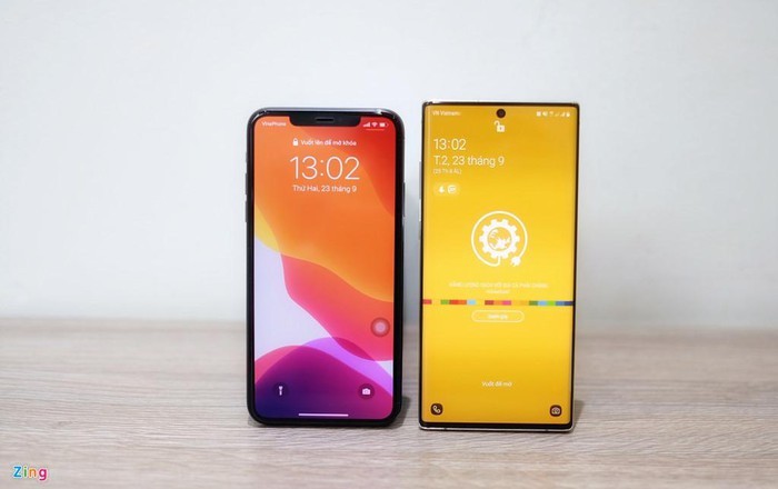 Màn hình của iPhone 11 Pro Max có kích thước 6,5 inch nhỏ hơn so với 6,8 inch trên Galaxy Note10+. Tuy nhiên, khi đặt 2 model này cạnh nhau, người dùng khó có thể nhận ra sự chênh lệch về kích thước.