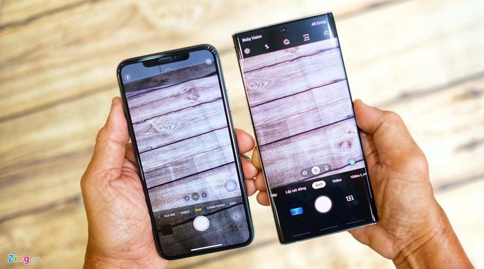 Giao diện chụp ảnh trên 2 model này đơn giản, dễ sử dụng, người dùng có thể chuyển qua lại giữa góc siêu rộng (0,5x), thường (1x) hay zoom quang 2x. Theo DXOMark, Galaxy Note10+ đang là model có camera chụp đẹp nhất với 113 điểm. Chuyên trang này vẫn chưa công bố số điểm của iPhone 11 Pro Max.