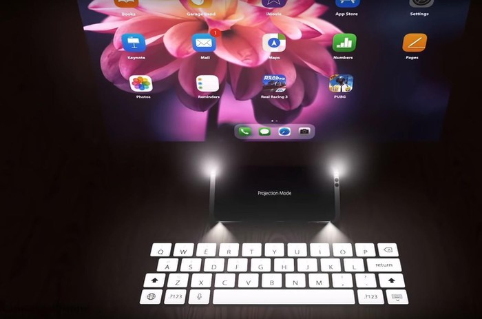 Phần "tai thỏ" đã được loại bỏ thay vào đó là hệ thống camera trượt. Ở bản concept này, iPhone 11 sẽ trượt cả phía trên và dưới với 4 máy chiếu nhỏ được đặt ở 4 góc. Theo đó, 2 máy chiếu bên cạnh phải sẽ chiếu bàn phím.