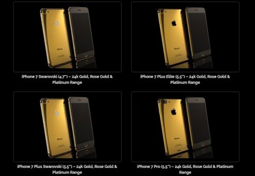 Cụ thể, từ 25/8, khách hàng tại Dubai và Các Tiểu vương quốc Ả rập Thống nhất có thể đặt mua trước (pre-order) các mẫu iPhone 7 được công ty này "độ" với tùy chọn mạ vàng 18K, vàng hồng, platinium được đính pha lê Swarovski hay thậm chí kim cương.