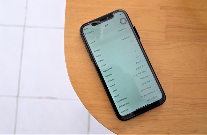 Trong phần cài đặt, máy hiển thị dung lượng bộ nhớ trong 256 GB và chạy iOS 12. Tuy nhiên, cấu hình này không chính xác. Model này chỉ được trang bị chip MediaTek, RAM 2 GB, bộ nhớ 16 GB và chạy trên nền Android 6.0.