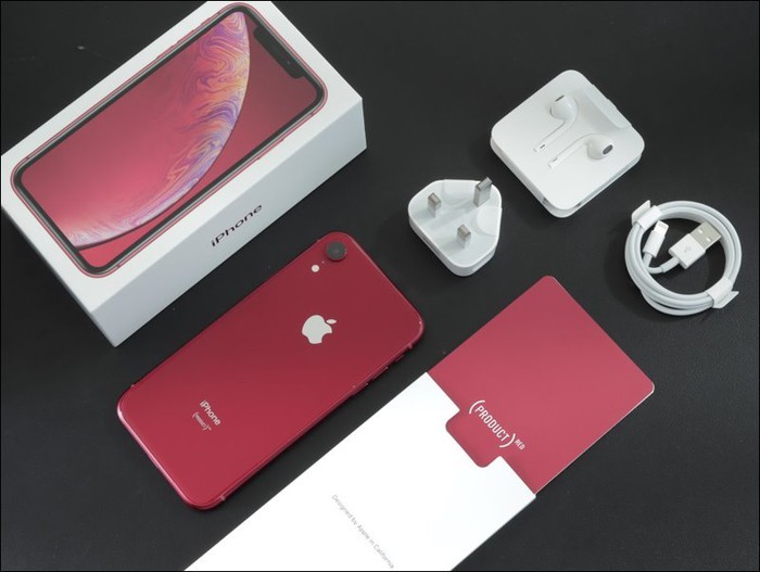 Hộp iPhone Xr không khác biệt so với iPhone Xs và Xs Max. Máy vẫn được tặng kèm tai nghe và cáp sạc.