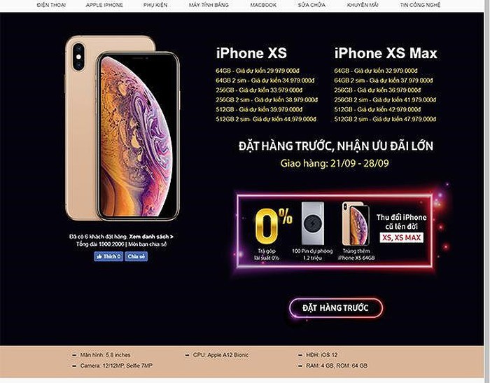 Đặt hàng trước iPhone XS Max tại Di động Việt nhận nhiều ưu đãi hấp dẫn