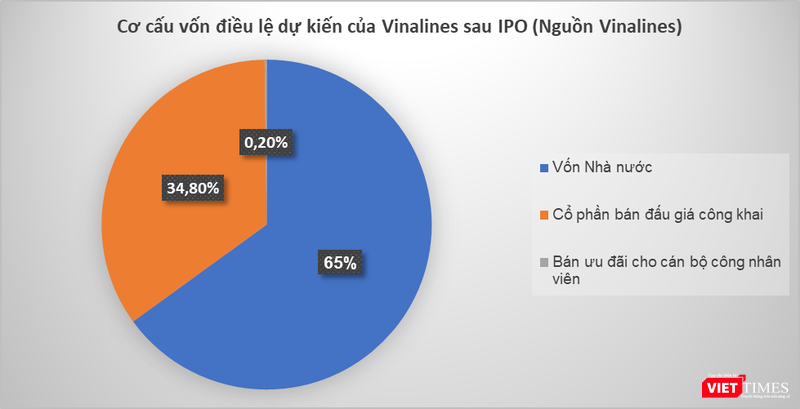 Theo đó, Công ty mẹ - Vinalines sẽ có vốn điều lệ là 14.046 tỷ đồng, trong đó giá trị phần vốn Nhà nước là 11.946 tỷ đồng. Cơ cấu vốn bao gồm: tỷ lệ sở hữu của Nhà nước là 65%; cổ phần bán cho nhà đầu tư chiến lược là 14,80%; cổ phần chào bán đấu giá công khai là 20% (tương đương với 280,9 triệu cổ phần) và số cổ phần còn lại được chào bán ưu đãi cho cán bộ công nhân viên.