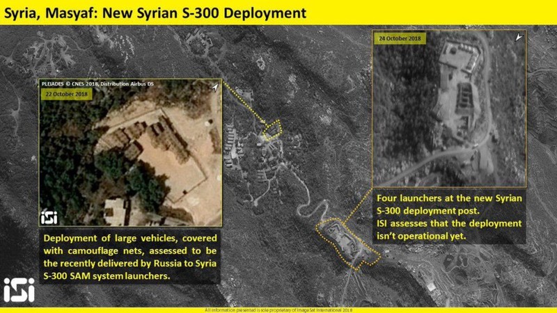 "Những trang thiết bị được nghi ngờ là hệ thống phòng không S-300, đổ bộ xuống sân bay Hmeimim những ngày cuối tháng 09.2018. Căn cứ vào những hình ảnh của iSi, các trang thiết bị này tạm thời được triển khai tại sân bay cho đến khi kết thúc quá trình xây dựng căn cứ cố định gần làng Masyaf . Các trang thiết bị có thể được chuyển đến vị trí đóng quân cố định vào tuần thứ ba tháng 10.2018”.