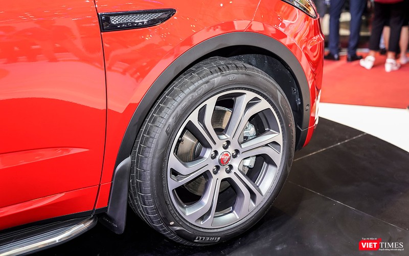 Jaguar E-PACE có kích thước tổng thể lần lượt là 4.395 x 1.984 x 1.649 mm và chiều dài cơ sở đạt 2.681 mm. Mặc dù được xếp vào dòng SUV nhỏ gọn nhưng Jaguar không ngần ngai trang bị cho E-PACE bộ la-zăng kích thước lớn 20 inch cùng bộ lốp runflat Pirelli P Zero 245/45 R20.
