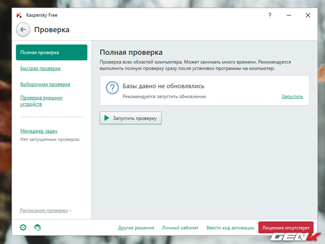 Sau đây là một số hình ảnh dùng thử Kaspersky Free Antivirus.