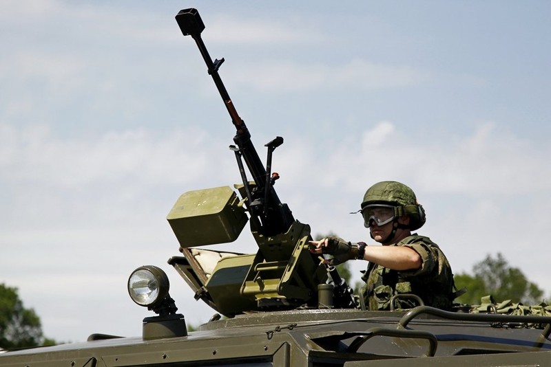 Cận cảnh binh sĩ Nga huấn luyện xạ kích từ súng máy Kord. Ảnh RG