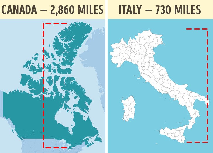 Bạn có thể đi xuyên Ý từ Bắc vào Nam chỉ trong 10 giờ. Đó là lý do tại sao quan điểm của người Ý về khoảng cách khác với quan điểm của người dân từ các quốc gia khác. Một cuộc hành trình 2 giờ từ Milan đến bãi biển Liguria gần nhất đối với họ cực kỳ dài! Một chuyến đi từ một vùng ngoại ô đến một thành phố cũng nên được lên kế hoạch cẩn thận trước.