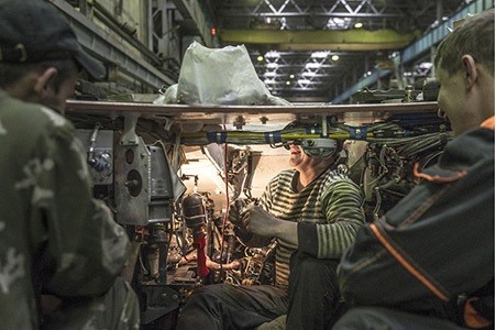 Lắp ráp trang thiết bị trong thân xe BMP tại xưởng