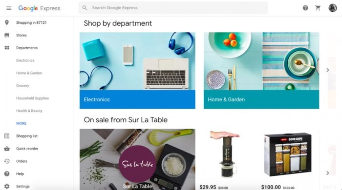 Google Express cho phép bạn nhận giao hàng trong ngày đối với thực phẩm, đồ điện tử, sách… Dịch vụ này có sẵn trên tại Hoa Kỳ. Bạn thường có thể nhận được giao hàng miễn phí trong ba ngày cho các đơn đặt hàng trên 25USD trên Google Express.