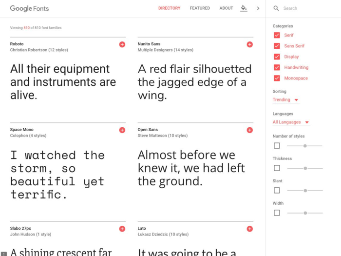 Google cung cấp một loạt các phông chữ tuyệt đẹp mà bạn có thể sử dụng miễn phí. Bạn có thể xem tất cả các phông chữ này trong Google Fonts.