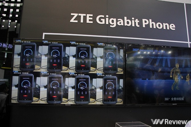 ZTE còn trình diễn cả điện thoại tích hợp kết nối chuẩn Gigabit LTE cho tốc độ download 4G lên tới gần 1000 Mbps (tương đương gần 100MB/s).