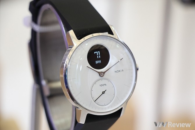 Những chiếc đồng hồ thông minh Withings (thương hiệu được Nokia mua lại vào năm ngoái) cũng được trưng bày tại triển lãm. Withings Steel có có kiểu dáng bắt mắt, trẻ trung, sử dụng hệ thống kim giờ, kim phút thực sự chứ không phải màn hình LCD hay OLED, gần gũi với đồng hồ truyền thống.