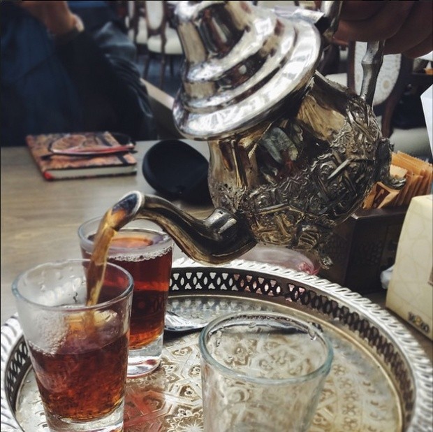 Người Ma-rốc tận hưởng trà xanh tươi mát với lá bạc hà.