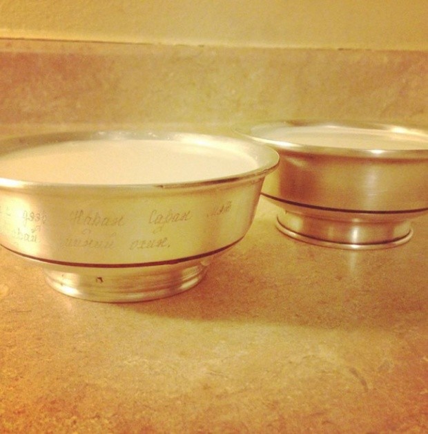 Người Mông Cổ nấu trà với sữa và muối trong một nồi kim loại.