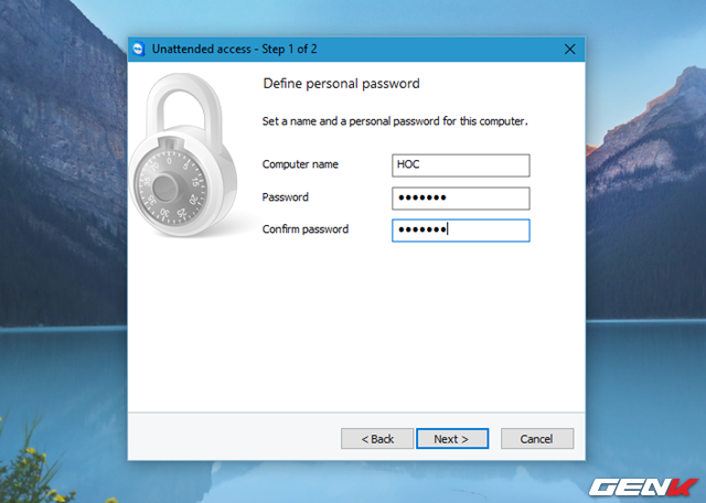 Hãy nhấn vào Next ở hộp thoại Unattended access để sang bước thiết lập tên và mật khẩu cho máy tính.