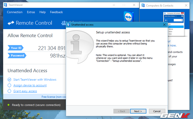 Khi quá trình cài đặt kết thúc, giao diện TeamViewer sẽ xuất hiện cùng hộp thoại Unattended access.