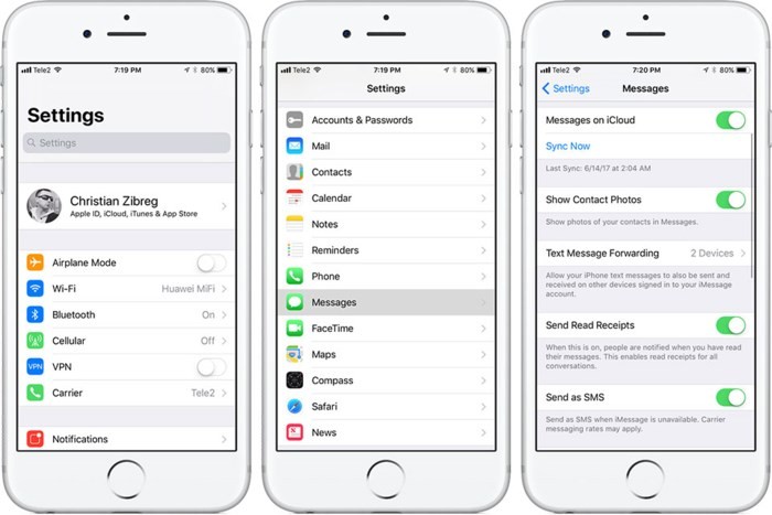 Message in iCloud: Một tính năng khác cũng được công bố tại WWDC 2017 là Message in iCloud lưu trữ an toàn các tin nhắn của người dùng, đó là tin nhắn iMessage hay tin nhắn SMS thông thường, trong iCloud bảo quản và đồng bộ lịch sử tin nhắn giữa các thiết bị iOS và macOS. Ngoài việc giữa mọi thứ đồng bộ, Message in iCloud còn có một số lợi ích khác. Đầu tiên, bạn chỉ phải xóa tin nhắn một lần. Không xóa nhiều lần trên mỗi thiết bị riêng biệt mà bạn có. Tức là xóa một tin nhắn từ một thiết bị, tin nhắn đó sẽ bị xóa khỏi tất cả các thiết bị còn lại. Ngoài ra, khi thiết lập thiết bị mới, tất cả tin nhắn của bạn sẽ có sẵn, cho dù bạn muốn khôi phục từ bản sao lưu hay không. Nói chung tất cả sẽ được đồng bộ trên các thiết bị iOS bạn có và bạn có thể đọc iMessage trên bất kỳ thiết bị Apple nào bạn có.