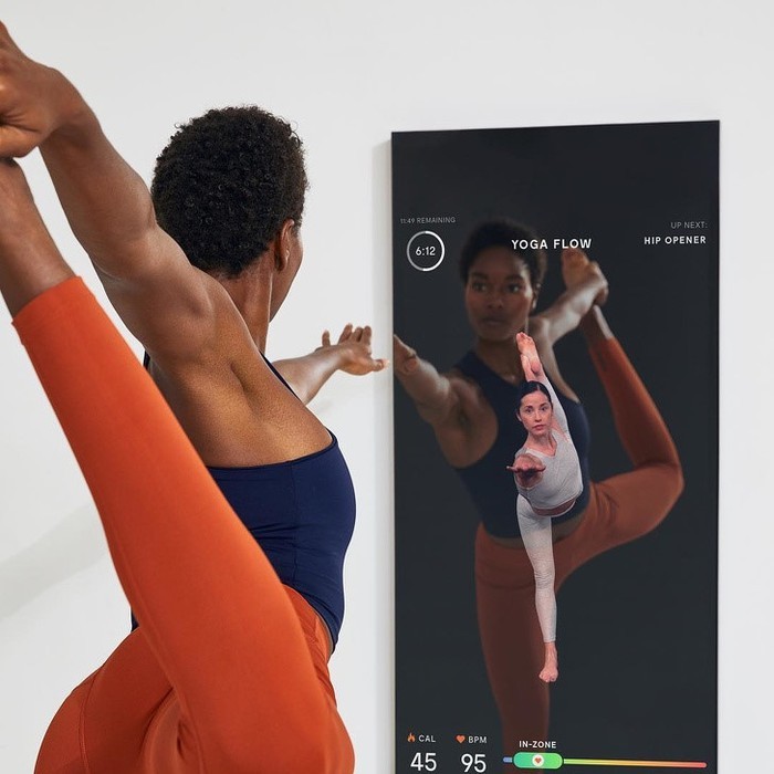 Gương thông minh MIRROR được thiết kế cho người dùng thích tập luyện thể hình tại nhà. Người dùng có thể thực hiện theo các video trên màn hình, đồng thời model này đóng vai trò như hướng dẫn viên trực tiếp khi phản hồi và chỉ dẫn theo thời gian thực. Mức giá của thiết bị này là 1.495 USD.