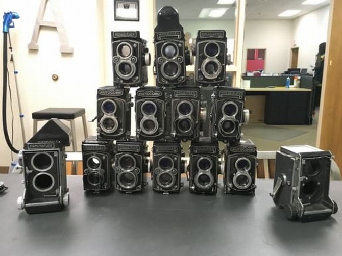 Có thể thấy trong kho báu này có rất nhiều máy từ khổ phim 135 đến khổ 120 (medium format), đa số đều là thương hiệu nổi tiếng như Rolleiflex, Minolta Autocord, MamiyaFlex, Pentax, Nikon...