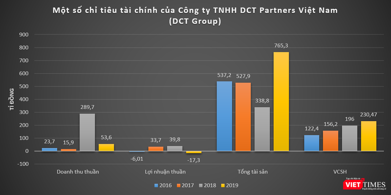 Dữ liệu của VietTimes cho thấy, trong giai đoạn 2016 - 2019, DCT Group (công ty mẹ) có 2 lần báo lỗ với số lỗ lần lượt là 6 tỉ đồng vào năm 2016 và 17,3 tỉ đồng vào năm 2019.