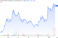 Tính đến ngày 31/5/2022, các cổ đông nước ngoài nắm giữ tổng cộng 370,4 triệu cổ phiếu EIB, chiếm 29,99% vốn điều lệ của Eximbank.