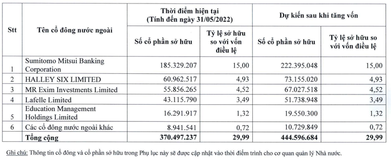 Trong đó, SMBC nắm giữ 185,3 triệu cổ phiếu, tương đương 15% vốn điều lệ.