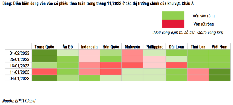 Trong báo cáo chiến lược mới phát hành, CTCP Chứng khoán SSI (SSI Research) cho biết xu hướng của dòng vốn ngoại trong tháng 1/2023 vào thị trường chứng khoán Việt Nam tiếp tục quán tính tích cực.